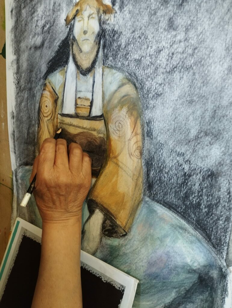 J’apporte dans mes cours,un apprentissage et des connaissances de différentes techniques picturales sur lesquelles nous pourrons nous appuyer pour développer l’expression de soi et l’imaginaire.